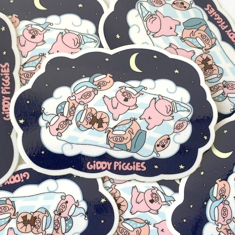 Bedtime Giddy Piggies Glossy Sticker