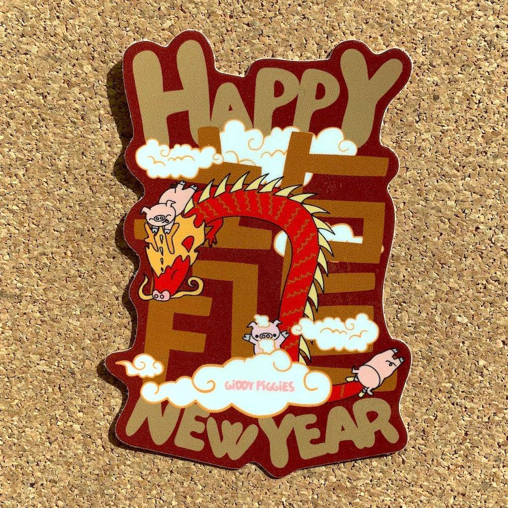 Giddy Piggies Year of the Dragon Glossy Sticker