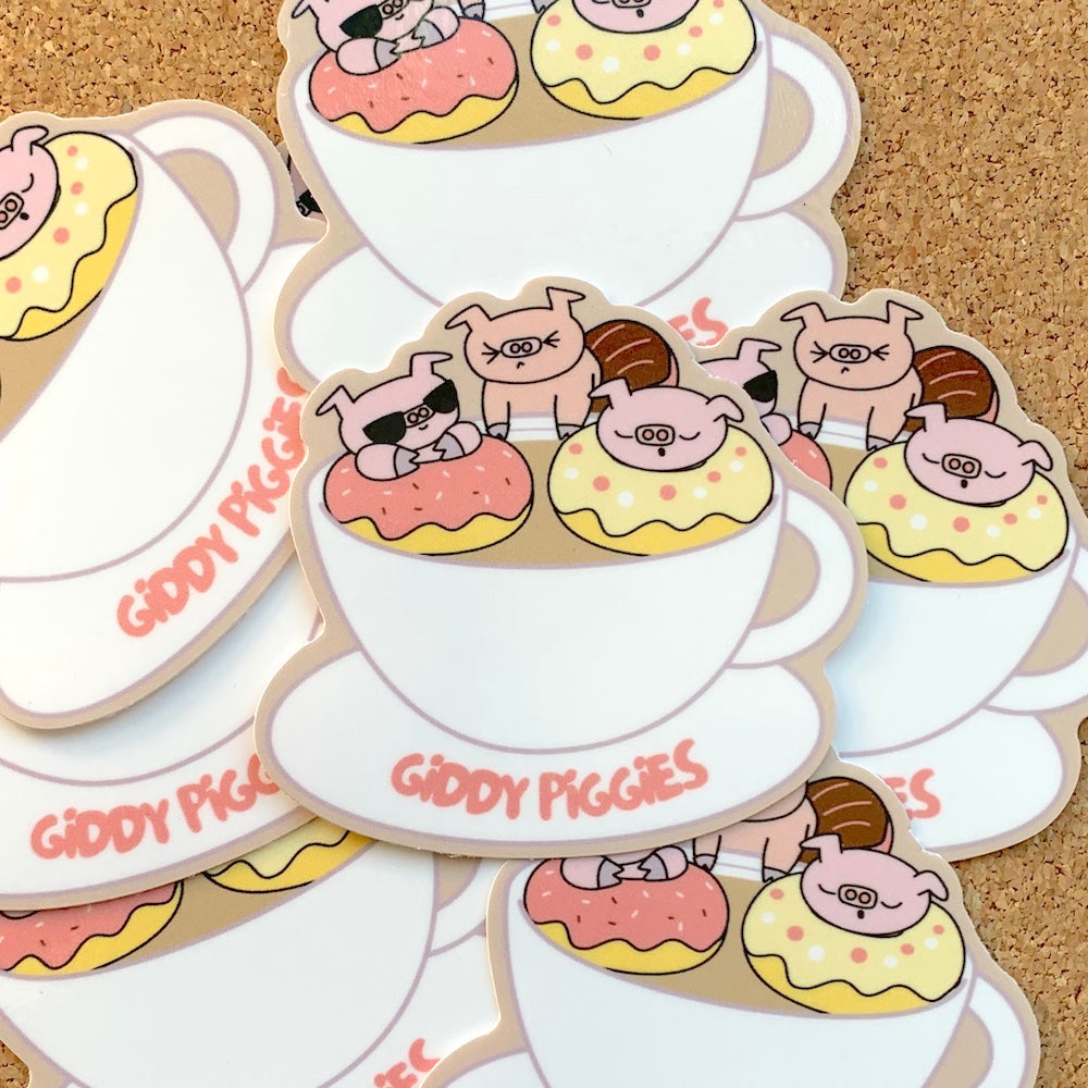 3 Little Giddy Piggies donut coffee cup glossy vinyl sticker