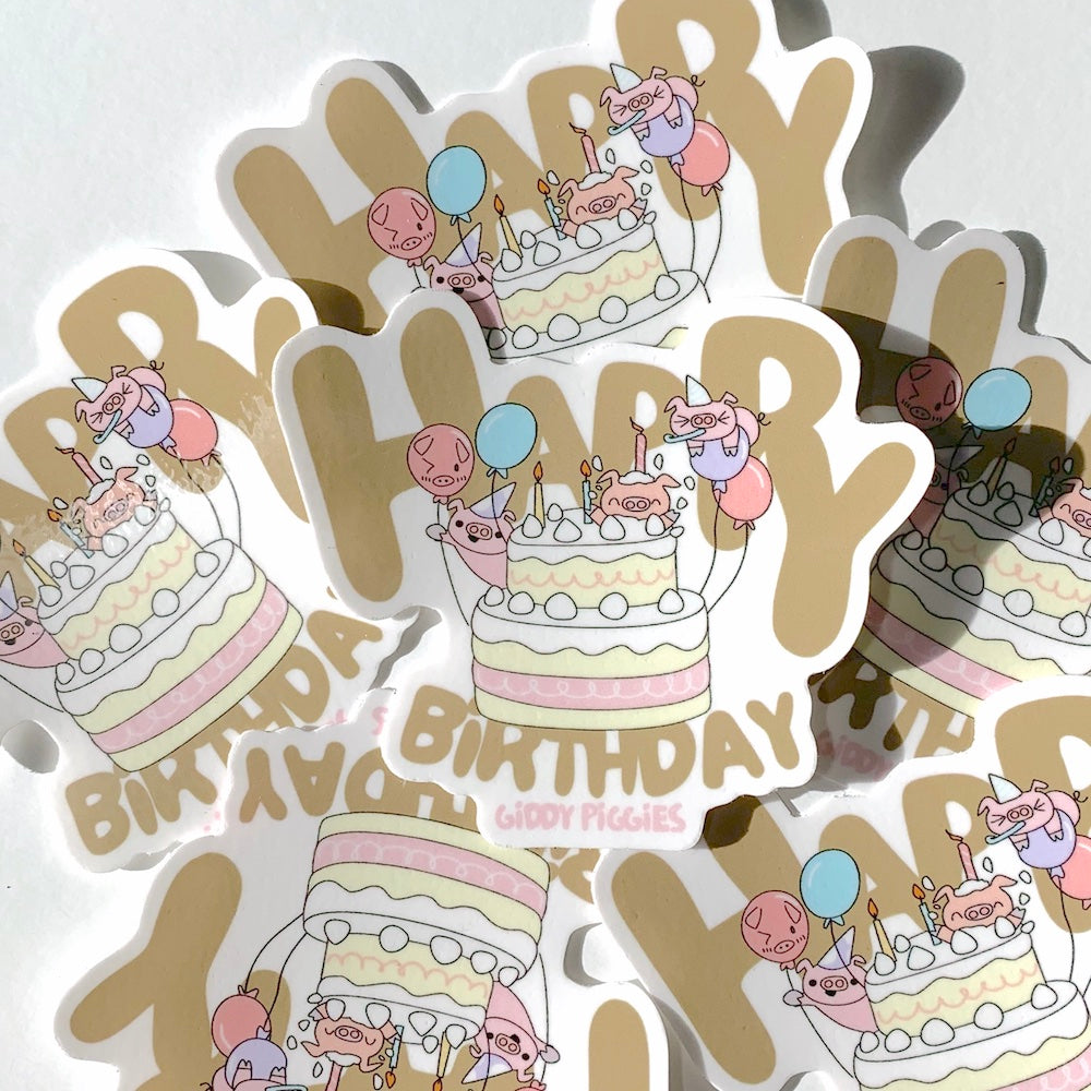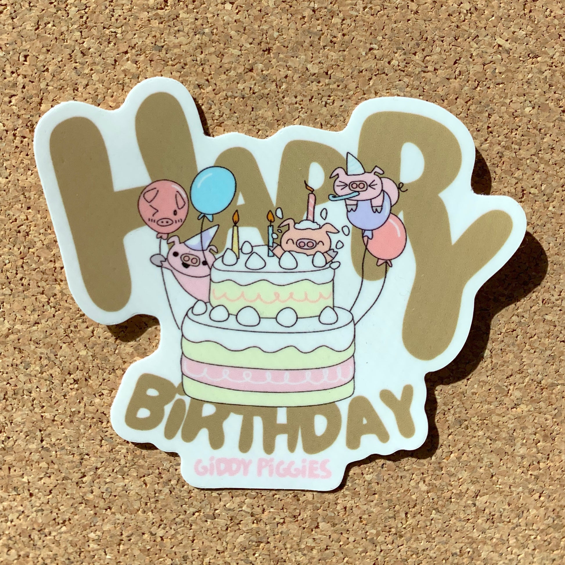 Giddy Piggies Happy Birthday Glossy Vinyl sticker