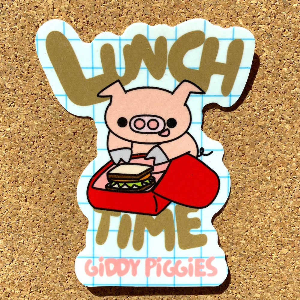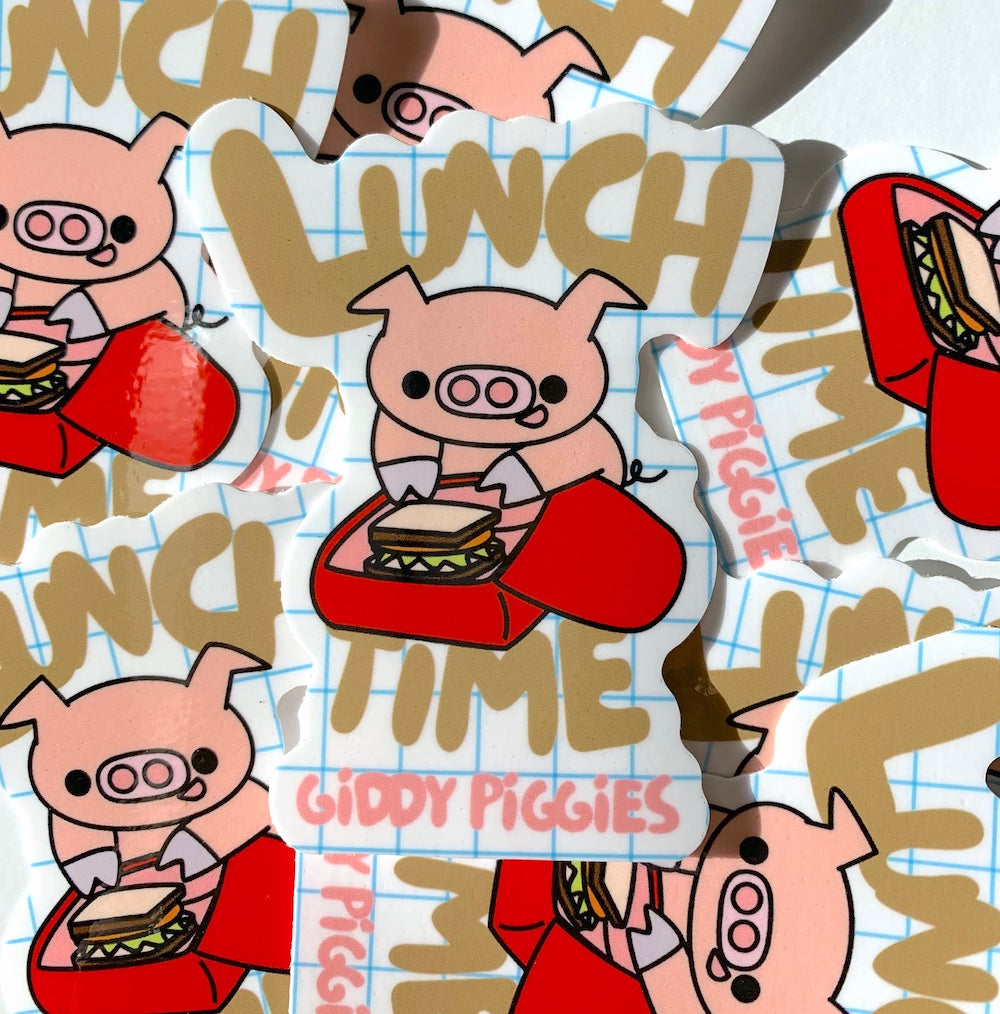 Giddy Piggies Lunch Time glossy vinyl sticker