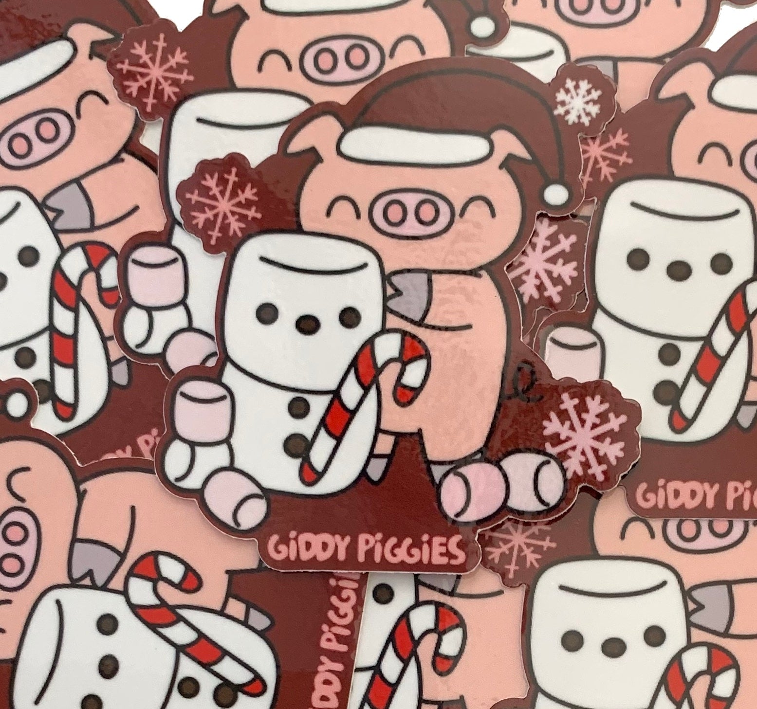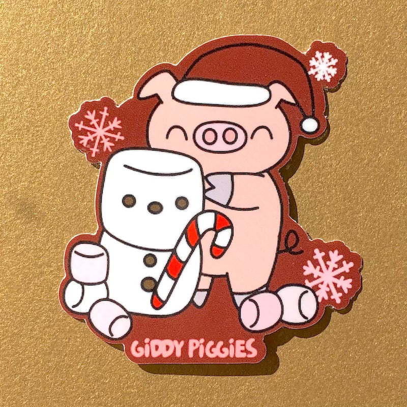 Giddy Piggies marshmallow snowman glossy vinyl sticker