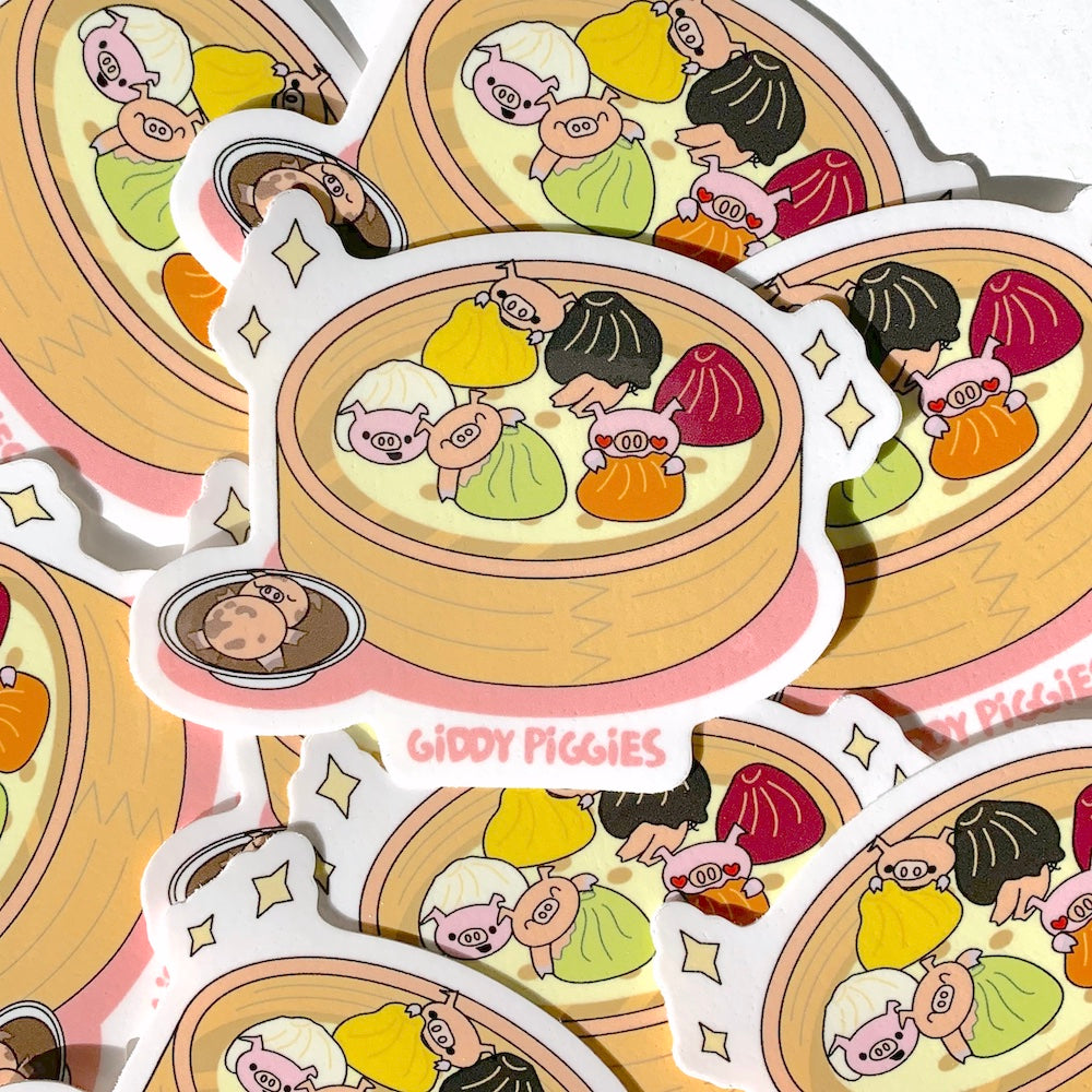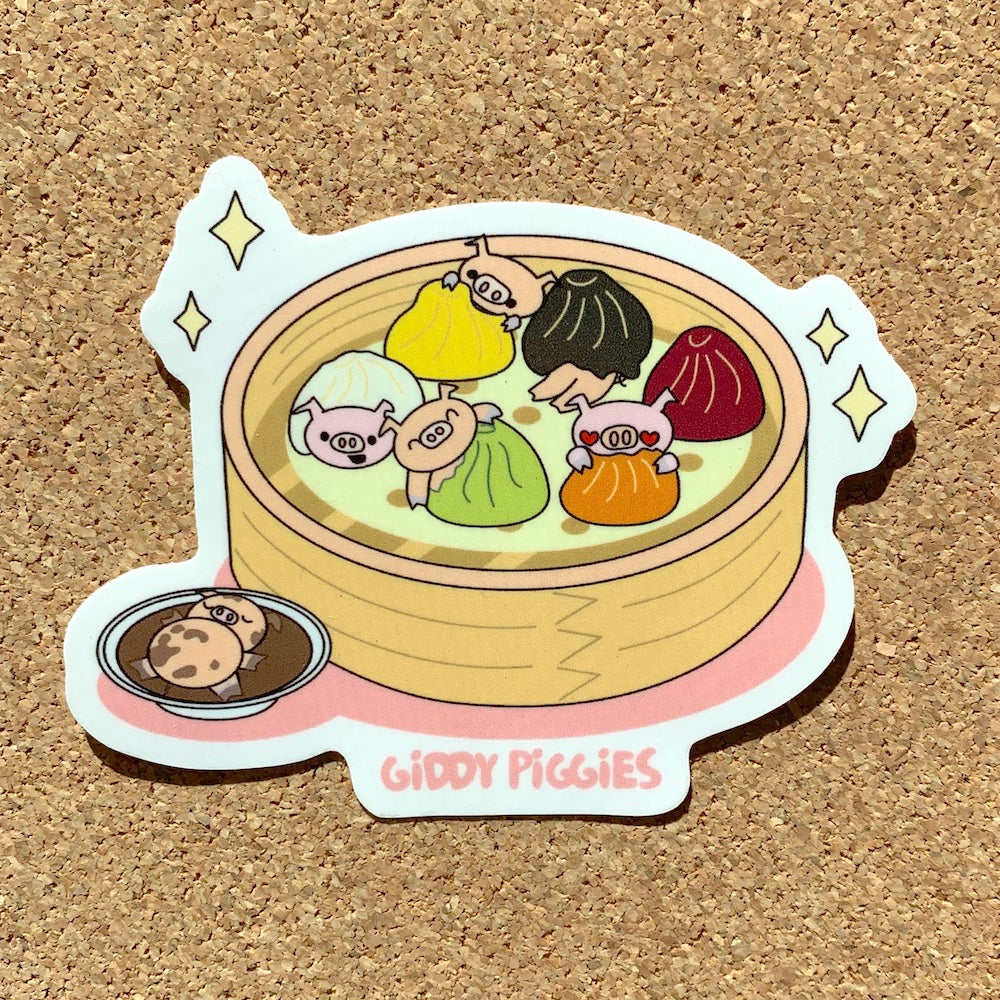 Giddy Piggies Rainbow Xiao Long Bao glossy vinyl sticker