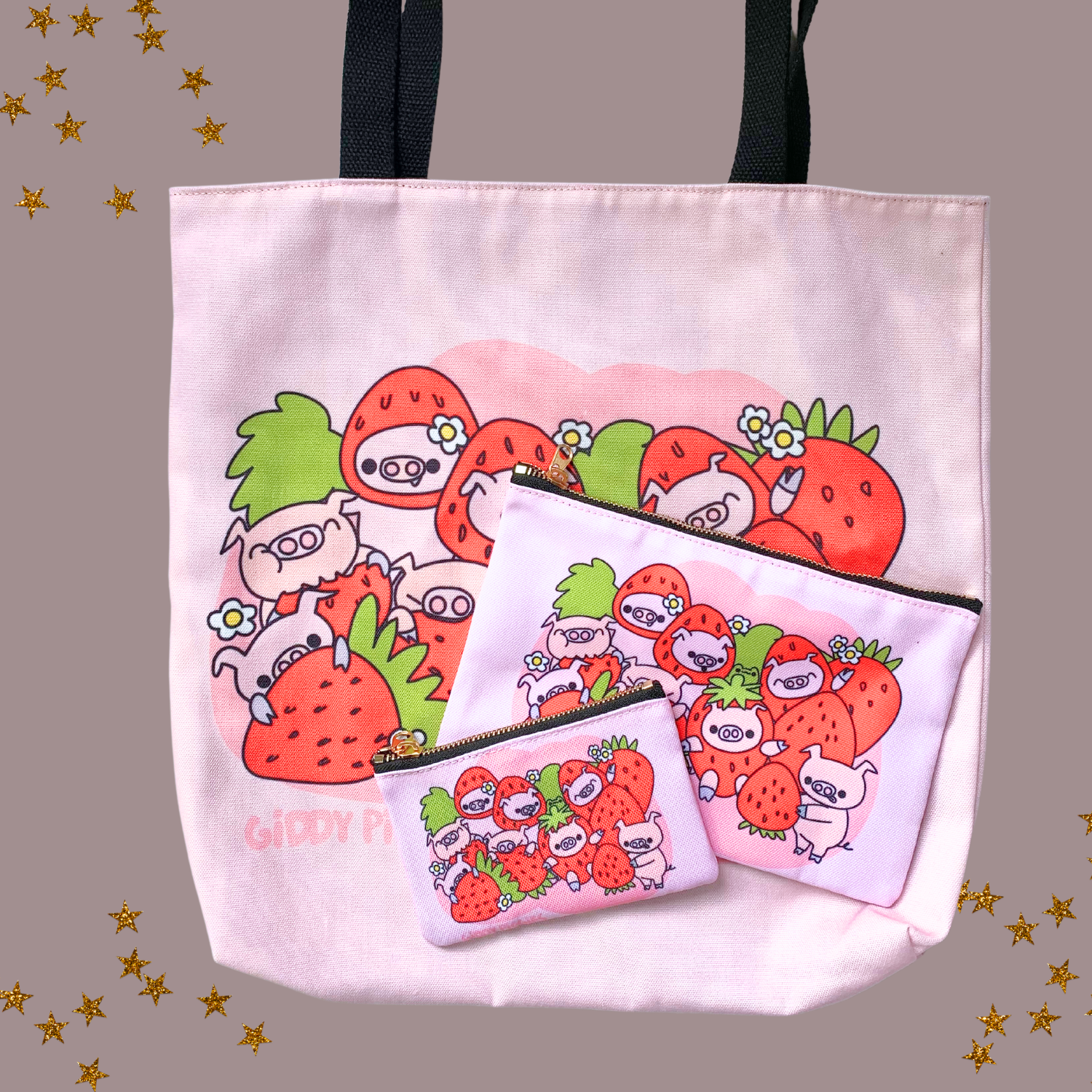 Strawberry Craze Tote Bag and Zipper Pouch Set